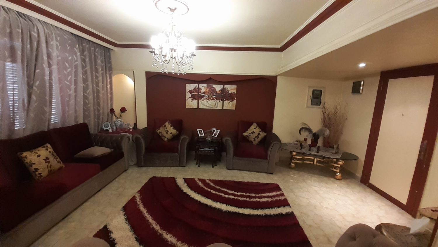 التقسيم : 3غرف و1حمام كبير عبارة عن حمامين مفتوحين على بعض ومطبخ واسع ببلكونة