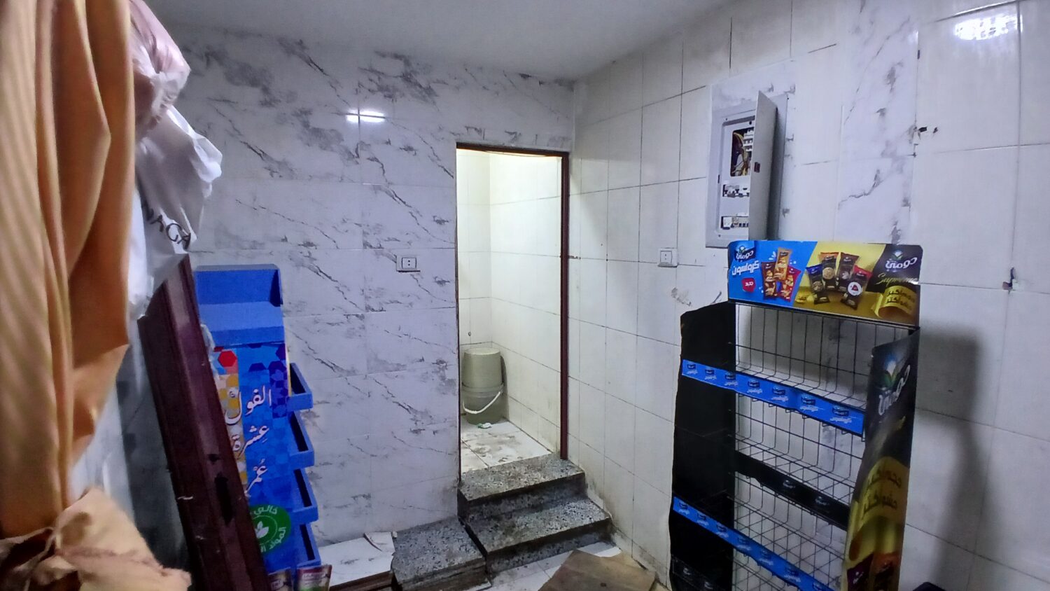 التقسيم : مساحة مفتوحة ( غرفة وحمام ) يمكن تقسيمه لأكتر من محل .