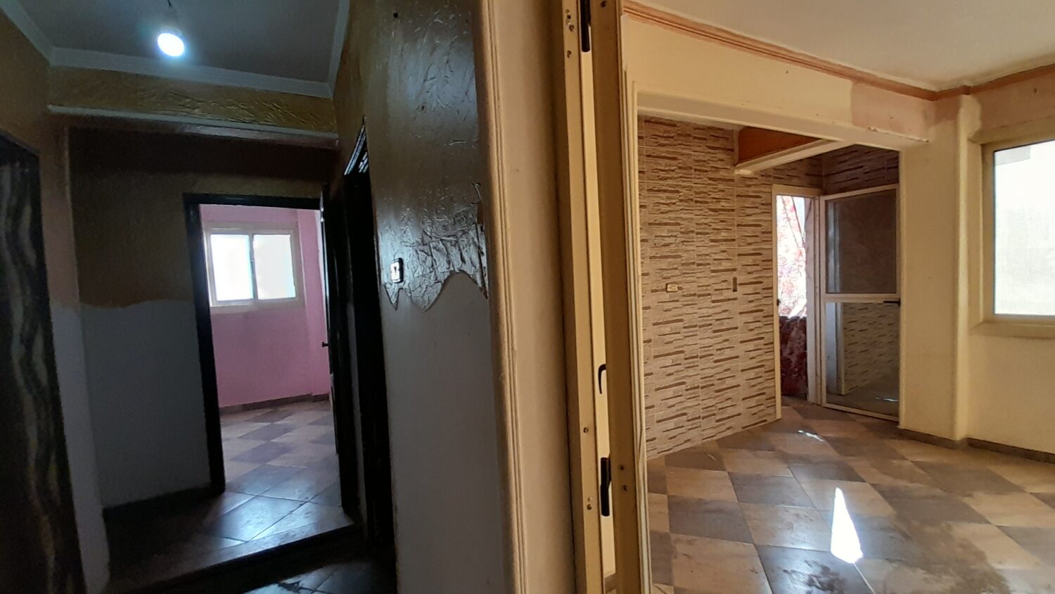 التقسيم : غرفتين وصالة وحمام ومطبخ و 2 بلكونة .